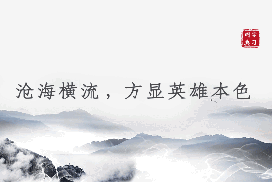 “沧海横流,方显英雄本色”源自郭沫若的《满江红》。“沧海横流”意思是海水四处奔流,比喻形势严峻复杂。