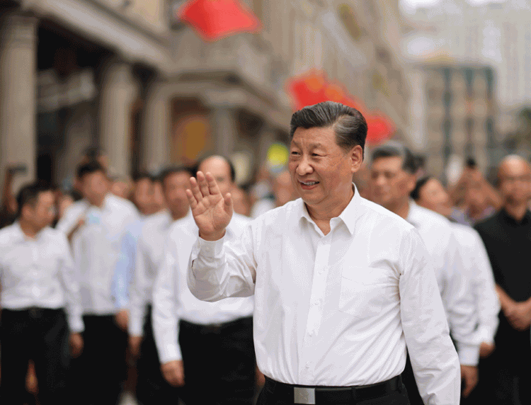 2020年10月13日,习近平在广东省汕头市小公园开埠区步行察看街区风貌时,向当地群众和游客挥手致意。