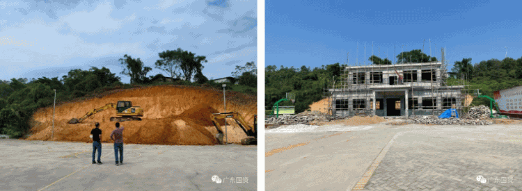 ▲门洞村党群服务中心前期施工建设工作(左图)、施工建设现状(右图)