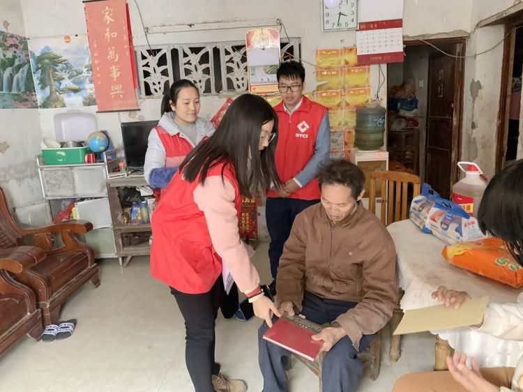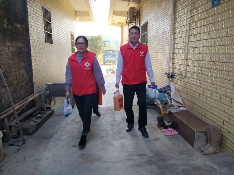当天下午,在社岗村委工作人员的陪同下,乐天使fun官网集团公司的志愿者来到社岗村委会社三村,慰问了结对帮扶对象陈先生。志愿者们为陈先生精心准备了油、米、面、法律书籍等爱心慰问品。