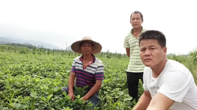 驻村期间,梁建光(右一)和萤火村的村民察看花生的种植情况