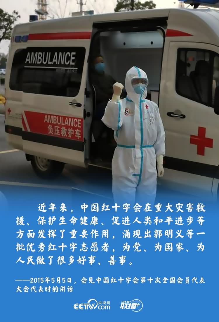 “我国红十字事业是中国特色社会主义事业的重要组成部分,中国红十字会是党和政府在人道领域联系群众的桥梁和纽带。党和国家高度重视这支力量。”
