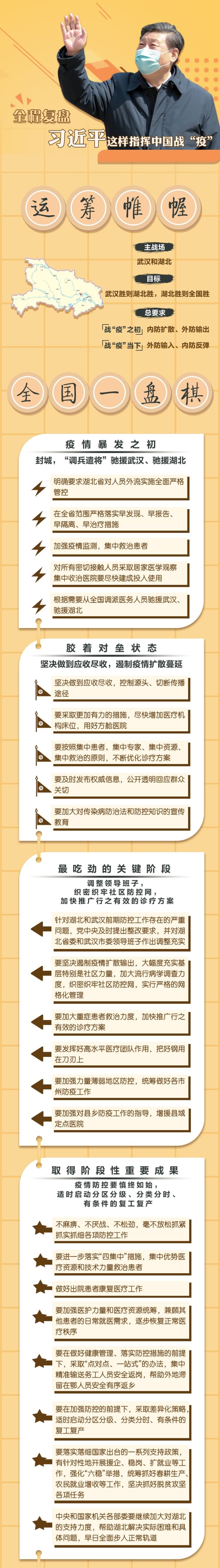 新冠肺炎疫情暴发以来,习近平总书记始终高度关注疫情防控工作,既从大处着眼,整体布局、谋定而动,又从小处入手步步为营、层层推进,在战“疫”不同阶段,始终把人民至上、生命至上放在首位,决策部署不断完备、显效,为中国战“疫”提供了根本遵循。
