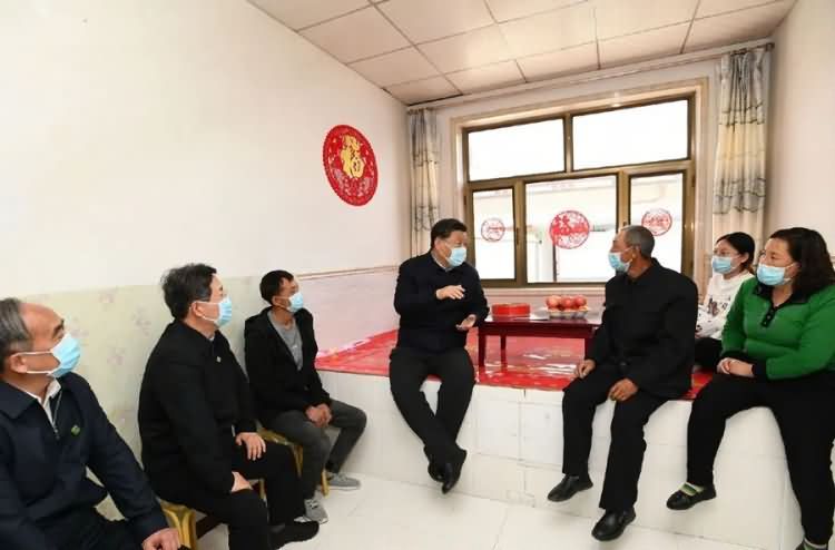 2020年5月11日至12日,中共中央总书记、国家主席、中央军委主席习近平在山西考察。这是5月11日下午,习近平在大同市云州区西坪镇坊城新村,同搬迁户白高山一家人坐在炕沿儿上拉家常。