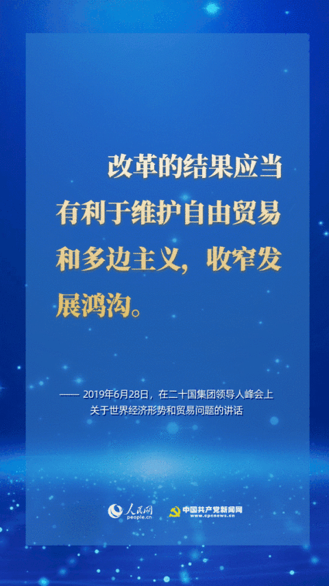 我们要加强多边贸易体制,对世界贸易组织进行必要改革。改革的目的是与时俱进,使得世界贸易组织能够更加有效地践行其开放市场、促进发展的宗旨。 改革的结果应当有利于维护自由贸易和多边主义,收窄发展鸿沟。