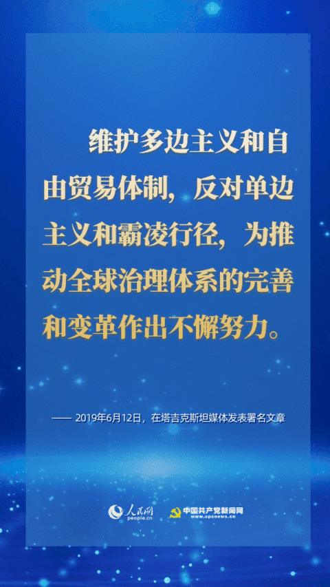 我们将坚定践行多边主义,维护以国际法为基础的国际秩序。中方愿同各国一道,秉持共商共建共享的全球治理观,坚定维护以联合国为核心的国际体系,坚定维护以世界贸易组织为核心的多边贸易体制。 对于经贸往来中出现的问题,各方都应该本着相互尊重的精神,通过平等对话协商,按照国际关系准则和多边贸易规则妥善处理,而不是动辄诉诸保护主义、单边主义。中国的这一立场,不仅是在维护各国的正当发展权利,也是在维护国际公平正义。