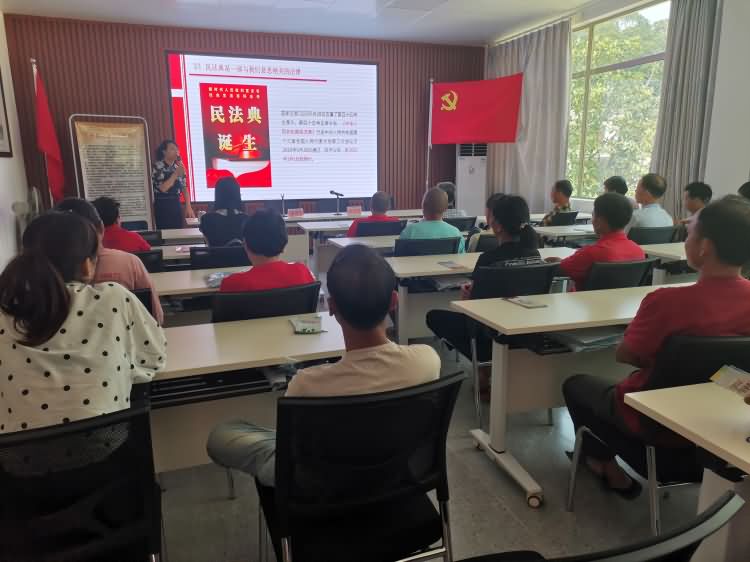 2020年5月28日,十三届全国人大三次会议表决通过了《中华人民共和国民法典》。《民法典》共7编1260条,作为新中国第一部以法典命名的法律,在法律体系中居于基础性地位,也是市场经济的基本法,被称为“社会生活的百科全书”。活动以讲座的形式,重点向连樟村村民宣传《民法典》的相关内容,吸引了连樟村村委干部和30多名村民代表前来参加。