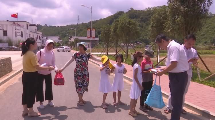 在连樟村商业街向村民和进村旅客派发宣传资料