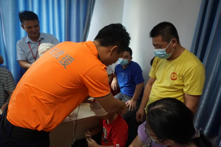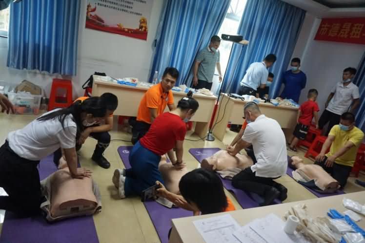 “水松救援”的主讲钟华老师就常见的外伤包扎、骨折的急救处理、气道梗阻急救以及心肺复苏知识进行了详细讲解。在外伤包扎知识教学中,老师重点向员工讲解了直接压迫止血法、止血带止血法以及包扎法则包括螺旋包扎法、头部头顶帽式包扎法。骨折急救处理教学中,老师向大家展示如何固定患处,以防止二次伤害的发生。而针对气道梗阻急救,老师着重向员工展示了海姆立克腹部冲击法,并针对成人以及婴幼儿不同的救助方式进行了现场演练。最后,关于心肺复苏急救知识教学,老师向员工强调了黄金4分钟急救的重要性,并表示如得不到及时地抢救复苏,将造成患者大脑及其他人体重要器官组织的不可逆损害,因此,掌握专业的施救手法以及及时施救非常重要。