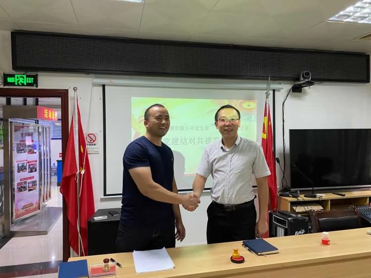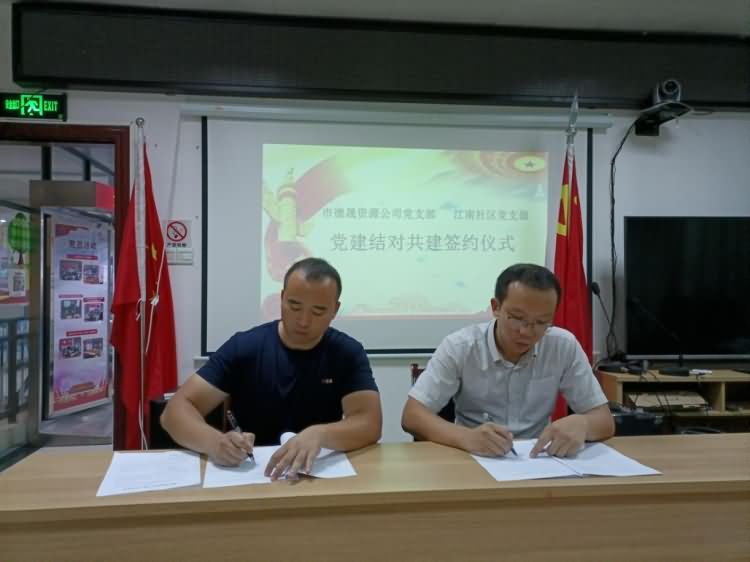 为充分发挥基层党组织的战斗堡垒作用,进一步推动基层党建融合互动,推动国企与社区实现资源共享、优势互补、互利共赢,9月17日,乐天使fun官网资源公司党支部与洲心街道江南社区党支部举行党建结对共建签约仪式,建立党建结对共建关系。资源公司党支部书记黄于于、江南社区党支部书记宋健东参加了签约仪式。