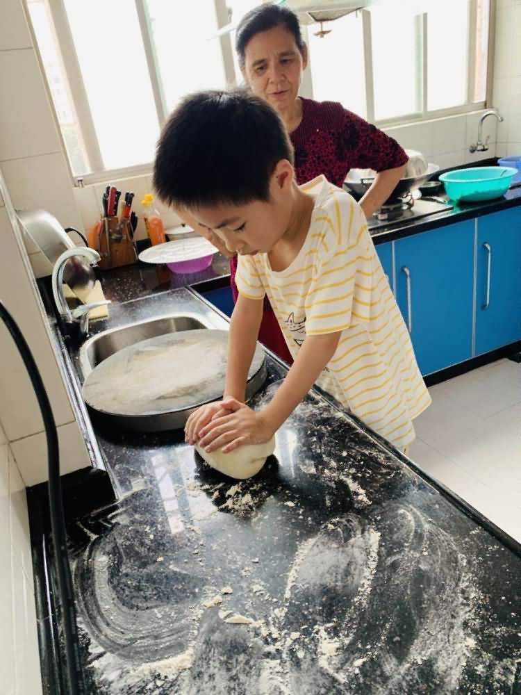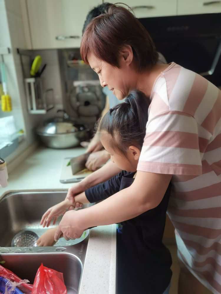 员工长辈教小朋友劳作