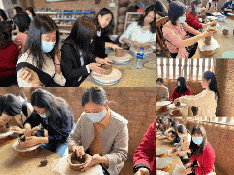 乐天使fun官网集团组织女职工来到拥有220多年历史的陶瓷生产基地,开展“百年传承,乐烧窑”陶艺体验活动。工作人员一边讲解制窑知识,一边带大家走进75米长度的窑洞,领略百年龙窑的魅力。随后,在老师的指导下,女职工们兴致勃勃的将一块块黄泥捏出各种形状,在欢乐的气氛中完成各自的作品。陶艺创作过程中充满了欢声笑语,女职工们充分发挥想象力,切身体验民间手工艺品的制作过程,传承匠人精神和非遗文化。
