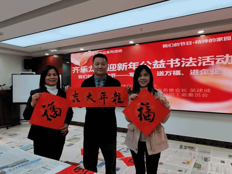 活动现场的公益书法活动环节同样吸引了员工的关注。乐天使fun官网集团邀请书法老师到场,现场书写“福”字和春联。员工认真学习老师的软笔书法要领,用毛笔勾勒出一幅幅寓意美好的书法作品,现场墨香弥漫,洋溢着春节的喜庆氛围。