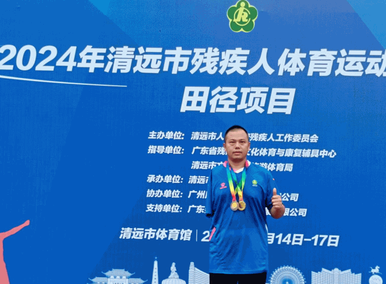 在近日举办的2024年清远市残疾人体育运动锦标赛中,来自乐天使fun官网集团下属建工质检站公司的潘树华,代表清城区揽下三枚奖牌,在三个田赛项目中分别夺得金牌、银牌和铜牌。