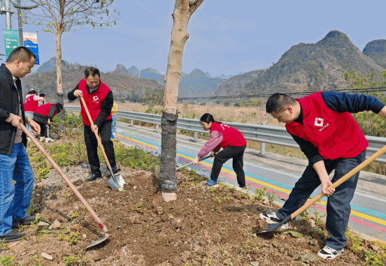 春风拂面处,实干正当时。在岭背镇驻镇帮镇扶村工作队的统筹下,大家齐心协力,挥锹破土、扶正树苗、培实新土。共同努力下,一株株新植的白玉兰树苗沿省道S250次第挺立,不仅构建起“春赏玉兰、夏享绿荫”的生态景观带,更在干部群众心中厚植“植绿护绿,共建共享”的责任种子。这种将雷锋精神转化为生态实践的创新举措,使植树活动成为了传承红色基因、践行绿色发展的生动课堂。