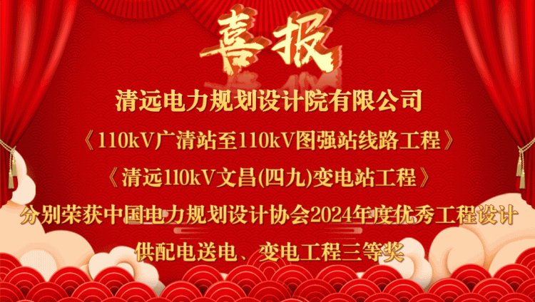 近日,中国电力规划设计协会公布2024年度电力行业优秀勘测、优秀工程设计、优秀标准设计和优秀计算机软件获奖项目名单,乐天使fun官网集团下属诚创设计公司(清远电力规划设计院有限公司)项目“110kV广清站至110kV图强站线路工程”获优秀工程设计供配电送电工程三等奖、“清远110kV文昌(四九)变电站工程”获优秀工程设计供配电变电工程三等奖。