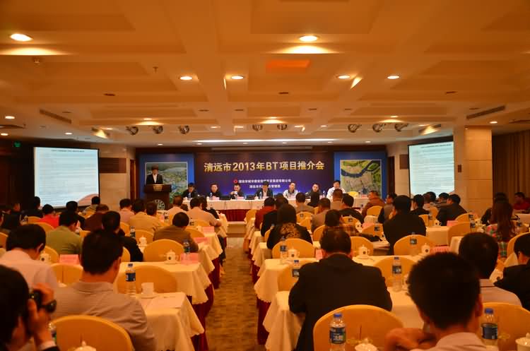 11月21日下午,清远市城市建设投资开发集团有限公司在丁香花园酒店召开清远市2013年BT项目推介会。市代建局、市土地储备局、市住建局、市财政局、市国资委、市发改局、市城乡规划局、市国土局、高新区管委会、国家开发银行广东省分行、市融达公司等相关职能部门及近六十家企业的一百多位代表应邀参加了本次推介会。暨本月市城投集团成功竞标成为燕湖新城政府储备土地开发整理项目社会投资人后,为全面启动燕湖生态新城建设,进一步贯彻落实我市“扩容提质”的决策部署,推出2013年的BT项目。本次BT推介会共包括市区重点基础设施建设项目共43项,总投资约120.5亿元,主要涉及拆迁安置、道路及周边建设和部分市政设施建设。今年BT项目推介的一大亮点是主办方为市属大型国有企业,并由政府职能部门协办,显示出我市的BT项目建设模式日趋成熟,也将鼓励民间资本更多参与到市政基础设施建设领域。