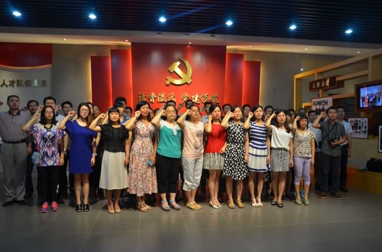 根据清远市直工委及市国资委关于开展“看一部党建专题片、听一堂精品党课、重温一次入党誓词、参观一次党建展示馆、写一篇心得体会感言”即“五个一”活动的工作部署和要求,同时为了进一步加强落实“三严三实”作风建设,强化全体党员全心全意为人民服务的宗旨意识,7月30日,乐天使fun官网集团全体党员随同市国资委前往位于广东家美陶瓷有限公司的清远党建展示馆参观学习。