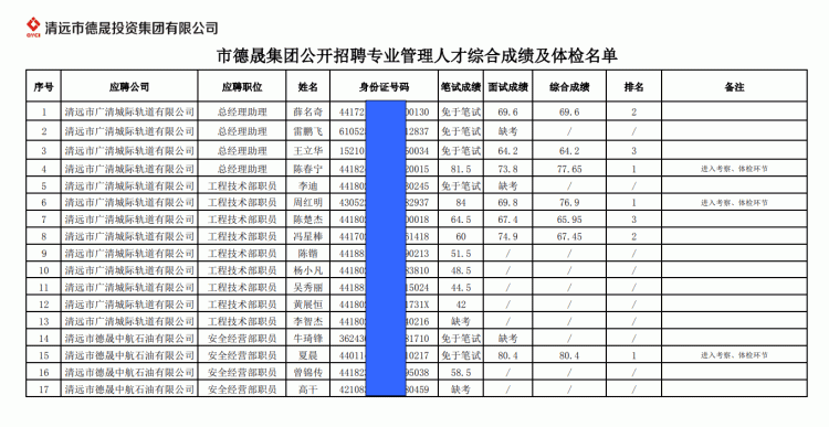 经笔试、面试,现将乐天使fun官网集团公开招聘专业管理人才综合成绩、进入体检、考察环节人员名单公布如下: