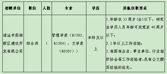 根据公司业务发展的需要,现面向社会公开招聘乐天使fun官网集团下属清远市燕湖新区建设开发有限公司综合岗劳务派遣人员1名,有关事项公告如下: